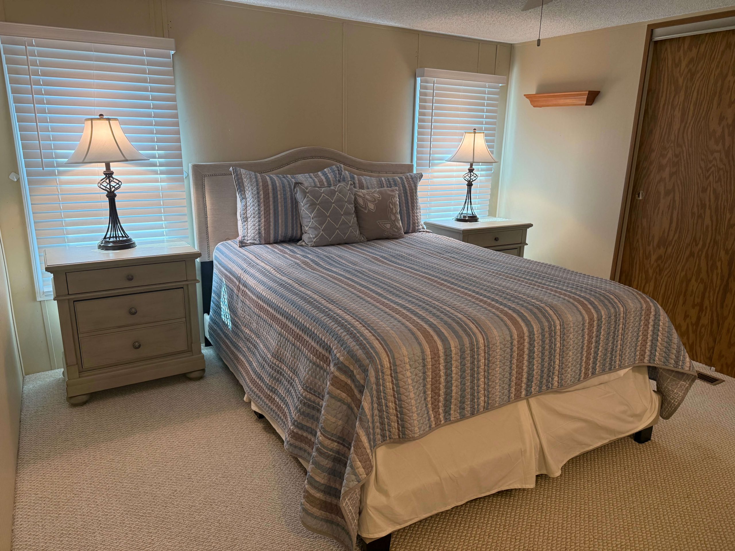 Relax on the welcoming front porch or unwind in the screened-in back porch overlooking your private yard. The property also features a 12x20 shed with a ramp, ideal for storing your golf cart, jet ski, or other lake toys.